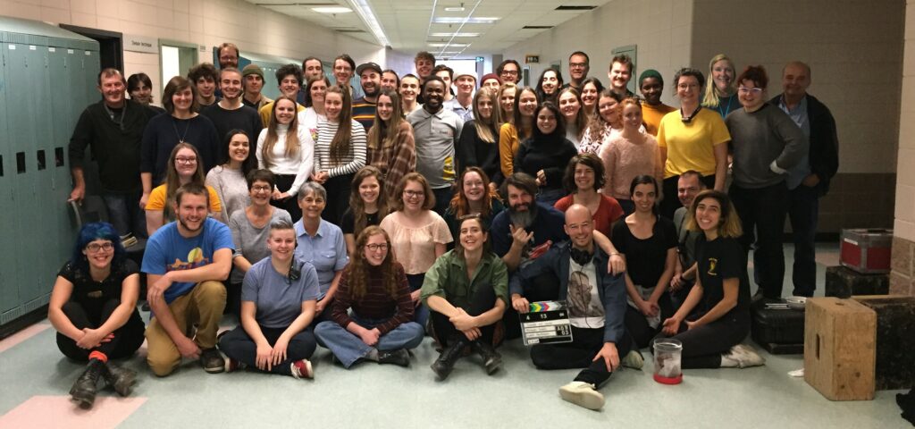 Le professeur a fait vivre une expérience passionnante à une trentaine d’étudiants des programmes Arts, lettres et communication, option Cinéma et option Littérature, théâtre et création du Cégep de Lévis. Ils ont participé au tournage avec Alexandre et Eve Landry. Certains d’entre eux ont déjà hâte de recommencer!
