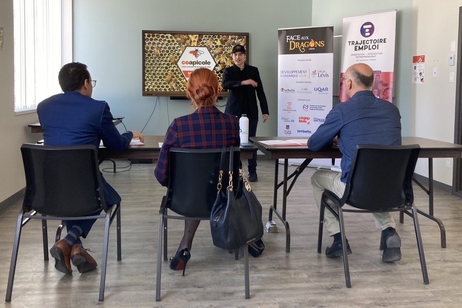 Le projet de fabrication d’un hydromel développé par la Coapicole a plu aux membres du jury du concours Face aux Dragons Lévis. Le 13 avril dernier, lors du dévoilement des gagnants, qui avait lieu au campus de Lévis de l’Université du Québec à Rimouski (UQAR), les jeunes entrepreneurs sont repartis avec une somme de 700 $ pour le réaliser.