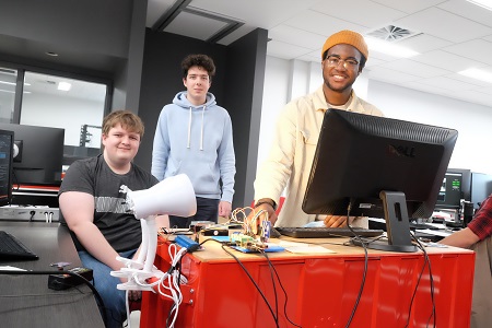 Les étudiants ont accès à du matériel hautement spécialisé pour apprendre, et cela, peu importe la spécialisation qu’ils choisissent en fin de parcours. Ceux qui optent pour le profil Infrastructure informatique ont tout ce qu’il faut pour mettre en place une infrastructure complexe et sécuritaire ou un réseau infonuagique. Ceux qui choisissent le profil Développement d’applications ont accès à un laboratoire contenant tout l’équipement nécessaire pour créer des jeux vidéo et des réalités mixtes ainsi que pour développer leurs compétences en lien avec les objets connectés et l’intelligence artificielle.