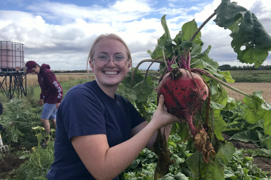 Le jardin n’est pas officiellement biologique, mais aucun engrais n’a été ajouté. Cette immense betterave a déjà été dégustée. Pourquoi était-elle si grosse? « C’était peut-être la variété », dit Camille. (À moins que la finissante ait vraiment le pouce vert!)