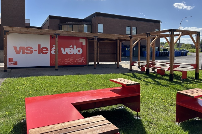 Nous venons d’inaugurer la Station vélo Desjardins, un nouvel espace de vie extérieur pour encourager notre communauté collégiale et les Lévisiens à utiliser des modes de transport actif pour se déplacer. L’aménagement de la Station vélo Desjardins, qui comprend un abri pour des vélos et des aires de repos, a nécessité un investissement de 75 000 $. Le projet a été réalisé grâce à la Fondation du cégep et à ses partenaires : la Caisse Desjardins de Lévis, la Ville de Lévis (Fonds vert), l’Association des retraités, l’Association de parents et l’Association étudiante.