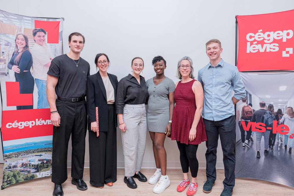 C’est avec fierté que Kathleen Cantin, directrice de la Formation continue et des services aux entreprises, Michel Lessard, Adm. A MBA, trésorier de la Fondation, Guy Patterson, directeur général du cégep et administrateur de la Fondation, Yves Dessureault, président du conseil d’administration de la Fondation, et Claudie Brisson, directrice générale de la Fondation, ont présenté le chèque symbolique au montant de 37 500 $.