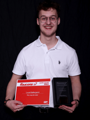 Assistant capitaine de son équipe et représentant au sein du comité sportif depuis deux ans, Louis est un étudiant-athlète engagé. Il est celui vers qui l’entraîneur se tourne quand vient le temps de s’impliquer, que ce soit pour recruter des bénévoles au sein de son équipe pour une activité de financement ou pour organiser un transport pour les partisans en vue d’un match à l’extérieur. Louis incarne les qualités que nous cherchons chez un étudiant-athlète. Il est passionné, déterminé, travaillant, et il n’hésite pas à donner son maximum pour soutenir son équipe. Sa présence sur le jeu est un véritable moteur pour ses coéquipiers.
