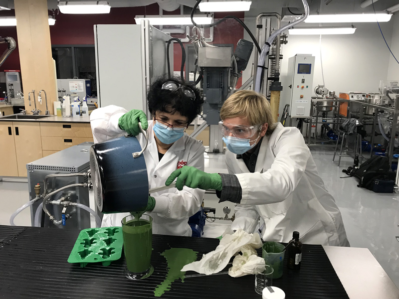 Cette année, de nouveaux produits seront offerts, notamment grâce à la collaboration de Carmen Tibirna, coordonnatrice du programme de Techniques de procédés industriels. En effet, il y aura des savons fabriqués au cégep, dans nos laboratoires, à partir du lait de deux chèvres laitières élevées à la ferme-école. Les savons sentent bon. Ils sont bien emballés et feront de bien jolis présents sous le sapin.