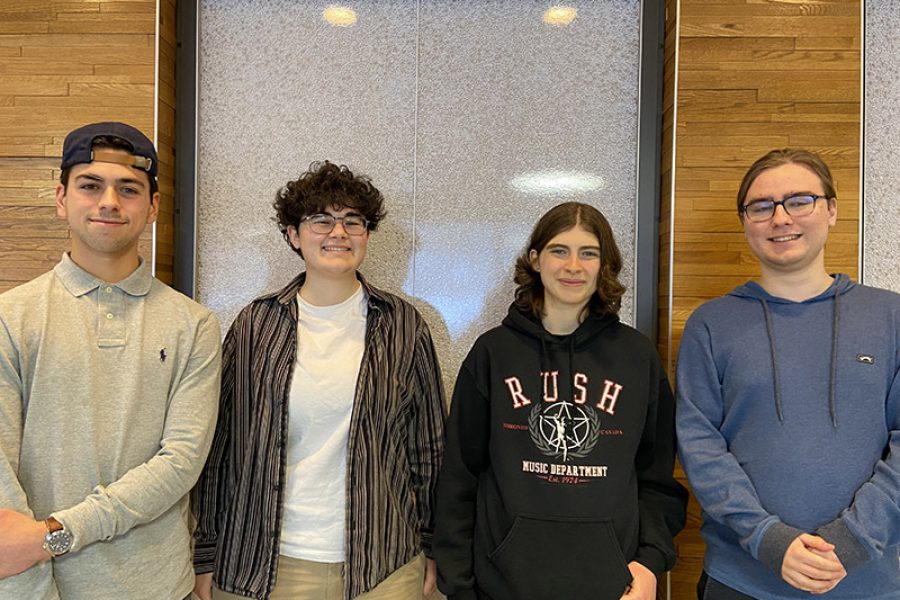 Dahlianne Sauvé, Émile Lemieux, Maxence Bois et Thomas Bélanger jouent à Teste-toi!, un projet associé au Réseau intercollégial des activités socioculturelles du Québec (RIASQ). Membres de la toute première équipe du cégep, ils ont remporté cet automne la finale de la division 2.
