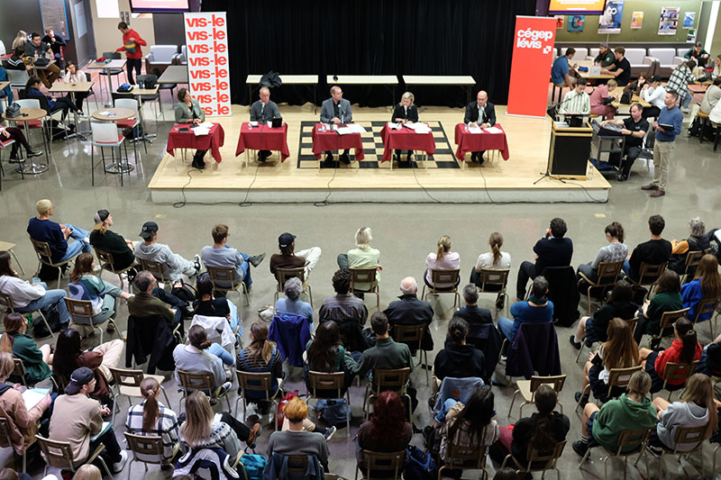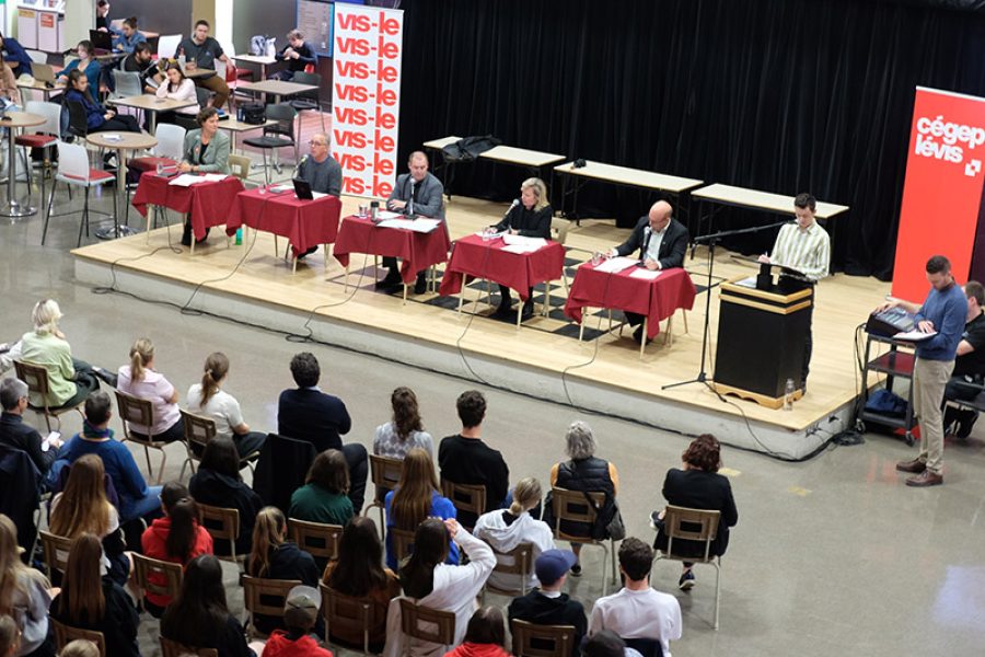 Le mardi 20 septembre dernier, à l’aube des élections provinciales, la communauté collégiale avait rendez-vous dans le mail pour écouter cinq candidats des circonscriptions des Chutes-de-la-Chaudière et de Lévis. Ils ont répondu aux questions posées par l’animateur, Christopher Sirois, étudiant de deuxième année en Sciences humaines et coordonnateur à l’Association étudiante. L’événement était organisé par Blaise Giguère-de Carufel, professeur de science politique au cégep.