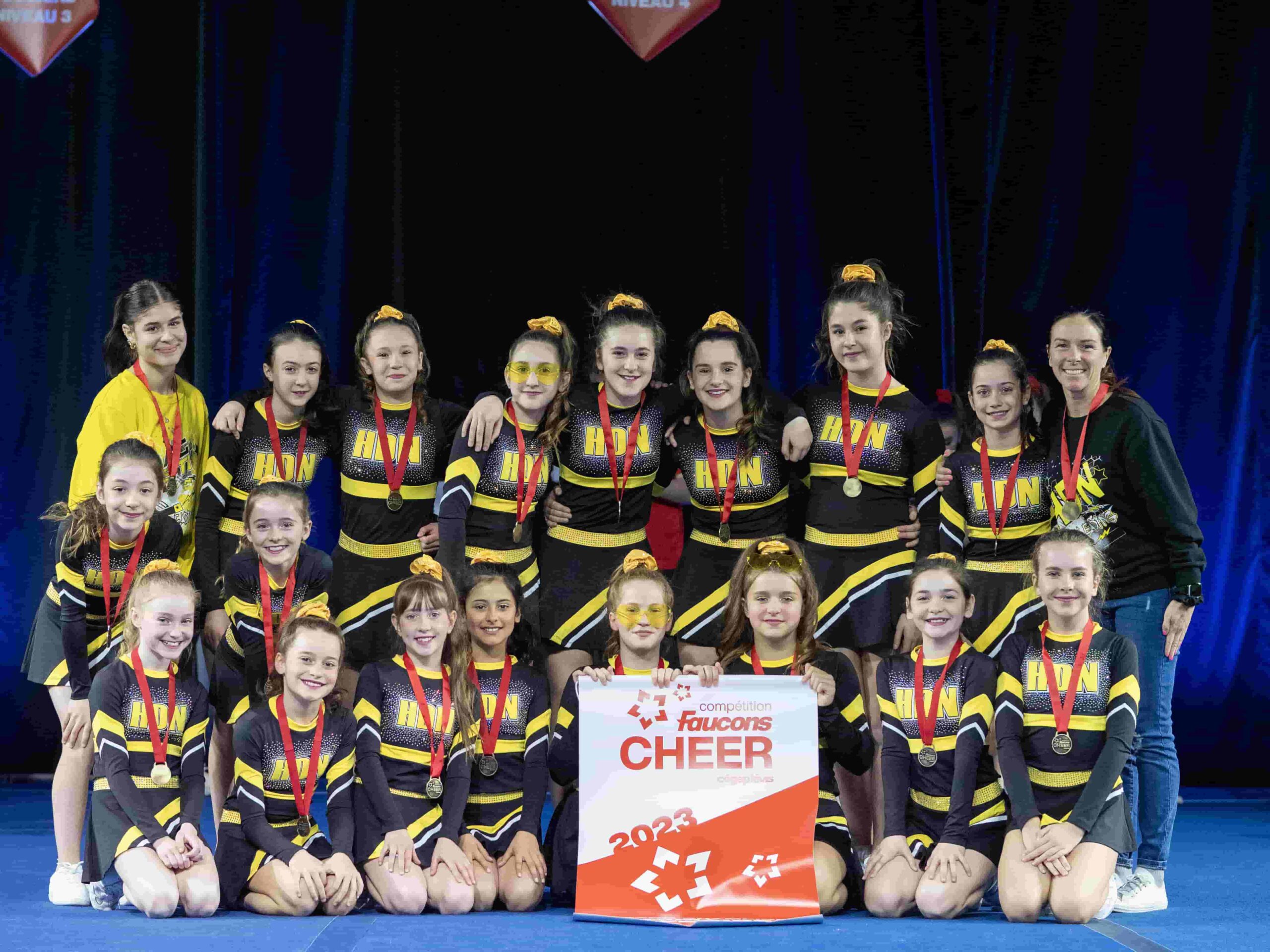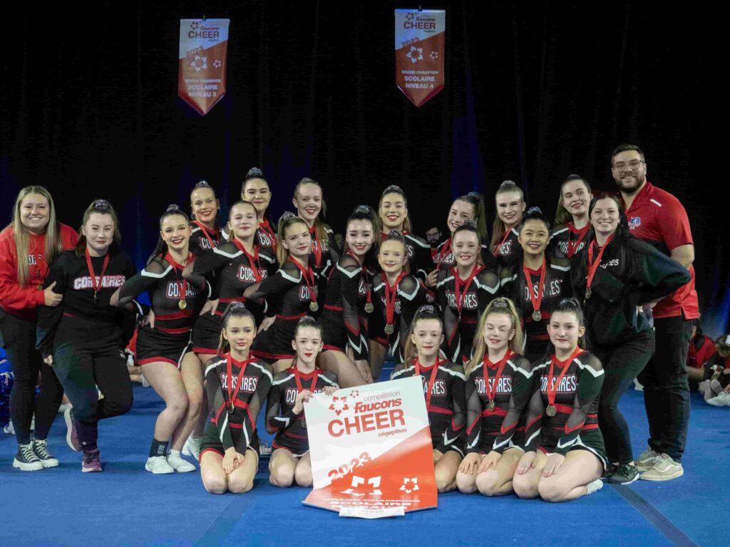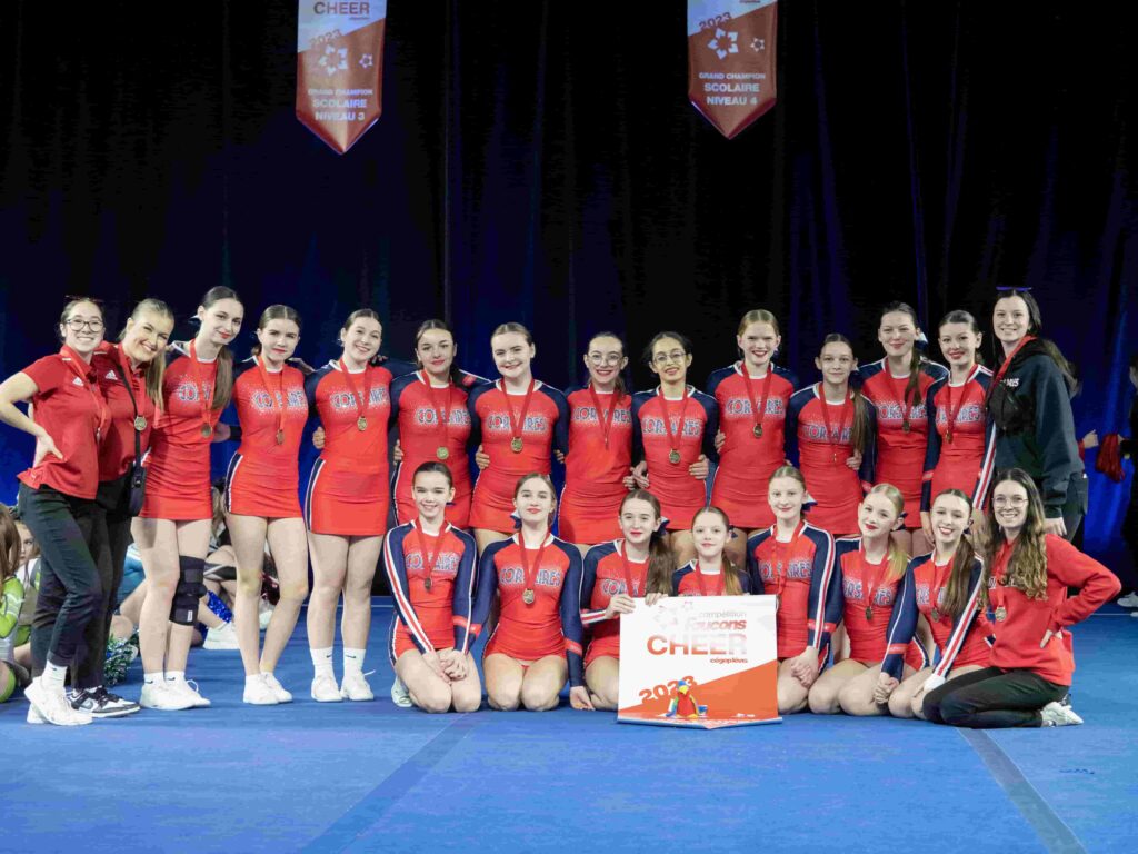 Le samedi 1er avril 2023, ce sont près de 1 100 athlètes, 2 650 spectateurs et 100 bénévoles qui se sont donné rendez-vous au nouveau centre sportif du cégep pour la compétition Faucons Cheer.