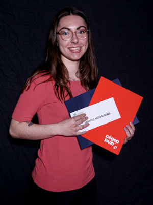 Catherine a toujours eu un intérêt marqué pour la biologie, le corps humain et la relation d’aide. Le programme Soins infirmiers était le choix idéal pour elle. À compter de l’automne 2024, cette finissante entamera son programme de baccalauréat en sciences infirmières tout en débutant sa carrière d’infirmière à l’Institut de Cardiologie et de Pneumologie du Québec. Elle souhaite également se spécialiser pour devenir perfusionniste clinique. L’obtention de cette bourse permet de souligner son travail acharné au Cégep de Lévis et l’excellence de ses résultats scolaires.
