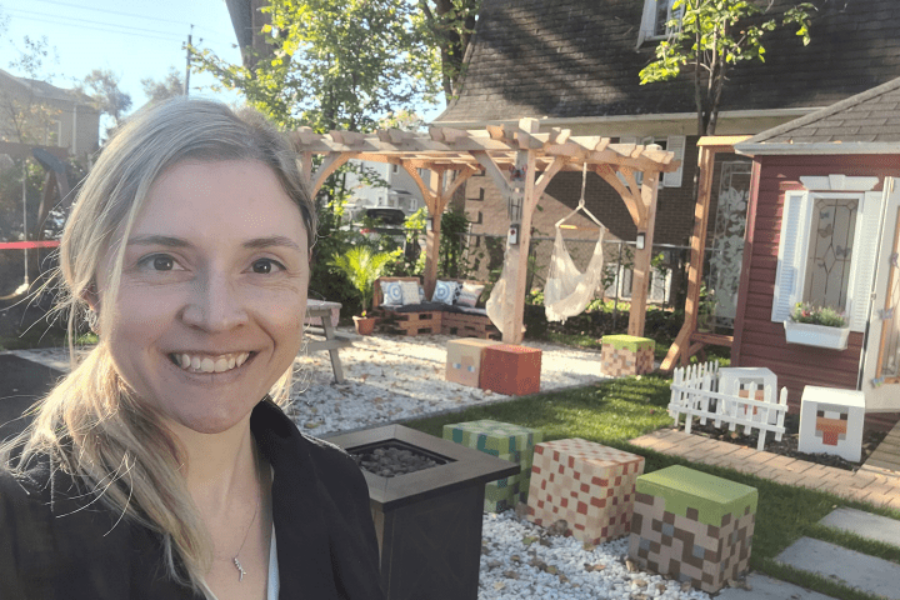 Lorsque l’organisme Deuil-Jeunesse lui a proposé de créer un jardin à la mémoire de Norah et Romy Carpentier, deux fillettes qui ont tragiquement perdu la vie en 2020, Andréanne n’a pas hésité à se lancer dans l’aventure. Sa créativité n’ayant pas de limites, elle savait qu’elle pouvait concevoir un aménagement à la hauteur des attentes. Elle n’a pas seulement imaginé le concept du jardin, elle a aussi participé à sa réalisation.