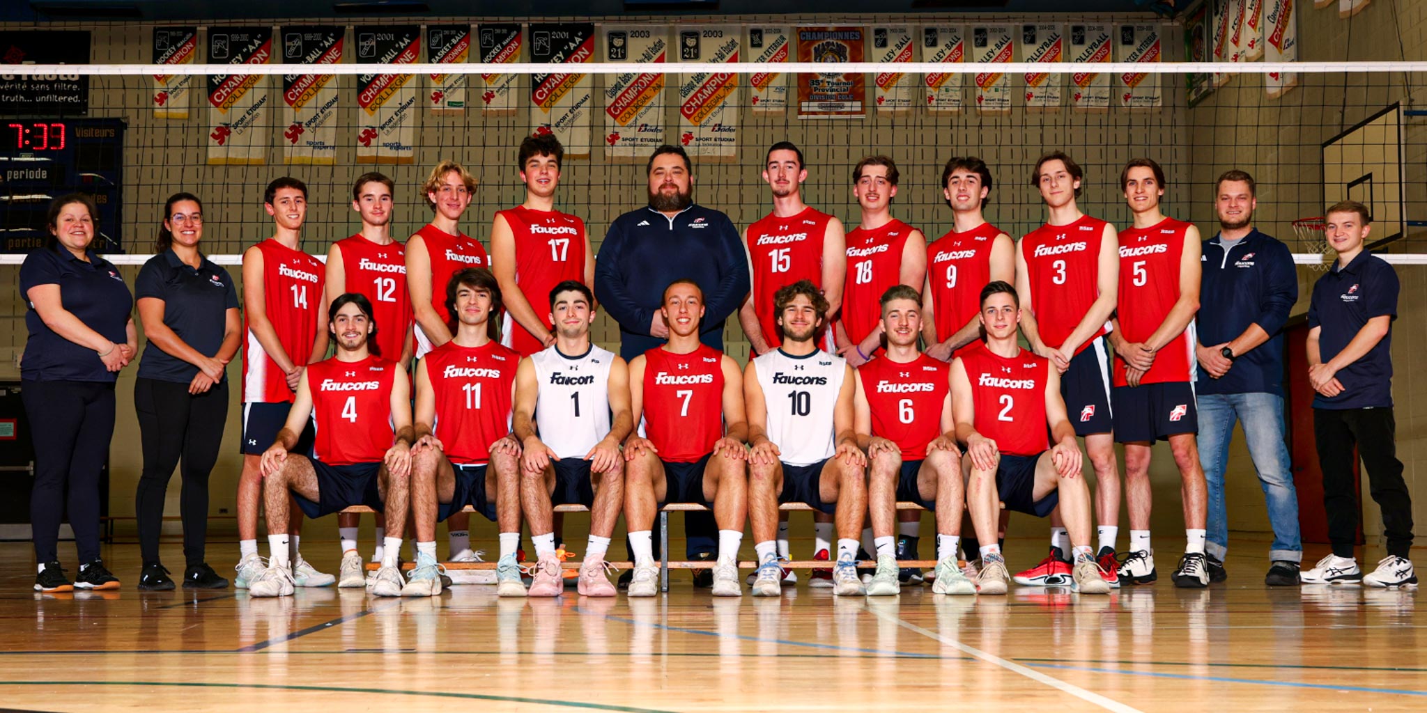 Année après année, notre équipe de volleyball demeure compétitive et se maintient dans les premiers rangs de la ligue. Les Faucons, membres de l’équipe masculine de volleyball, ont remporté le titre de champions provinciaux en 2017-2018, alors que le Cégep de Lévis était l’hôte du championnat.